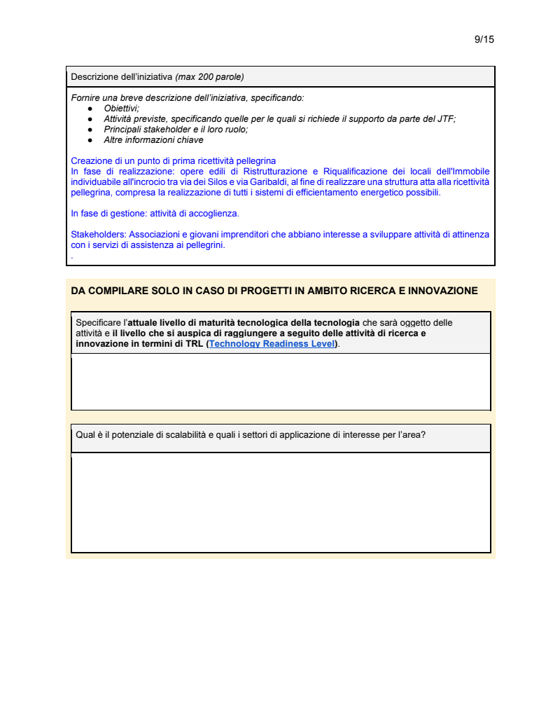 scheda progetto JTF