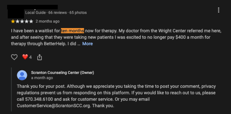 I have been a waitlist for ten months now for therapy. One star.pdf
